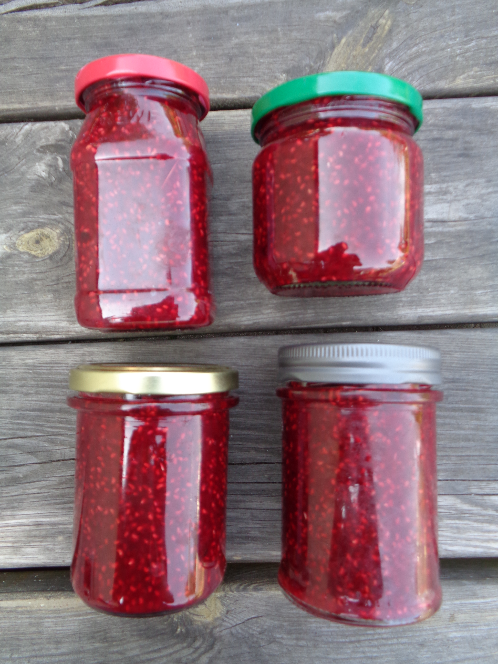 Himbeermarmelade kochen will ich schon seit drei Sommern. Vor vier Jahren wurde extra dafür ein Himbeerstrauch gepflanzt. Da wachsen auch Himbeeren, allerdings sind die echt lecker. Noch nie hat es eine einzige Beere bis in die Küche geschafft.