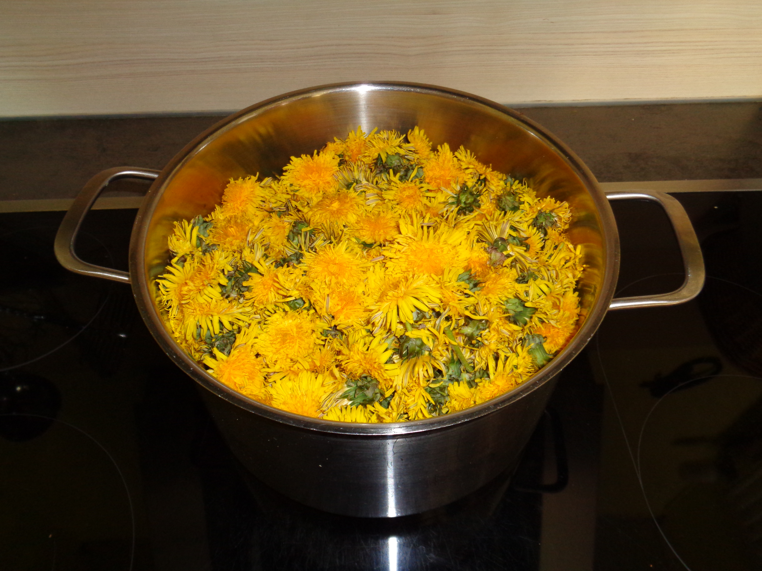 Im letzten Jahr haben wir die Löwenzahnblüte verpasst, das darf nicht wieder passieren. Das Maikind hat seit Tagen die Wiesen im Blick. Er sammelt einen großen Topf voll. Das gibt 15 Gläser Gelee, genug bis zum nächsten Jahr.