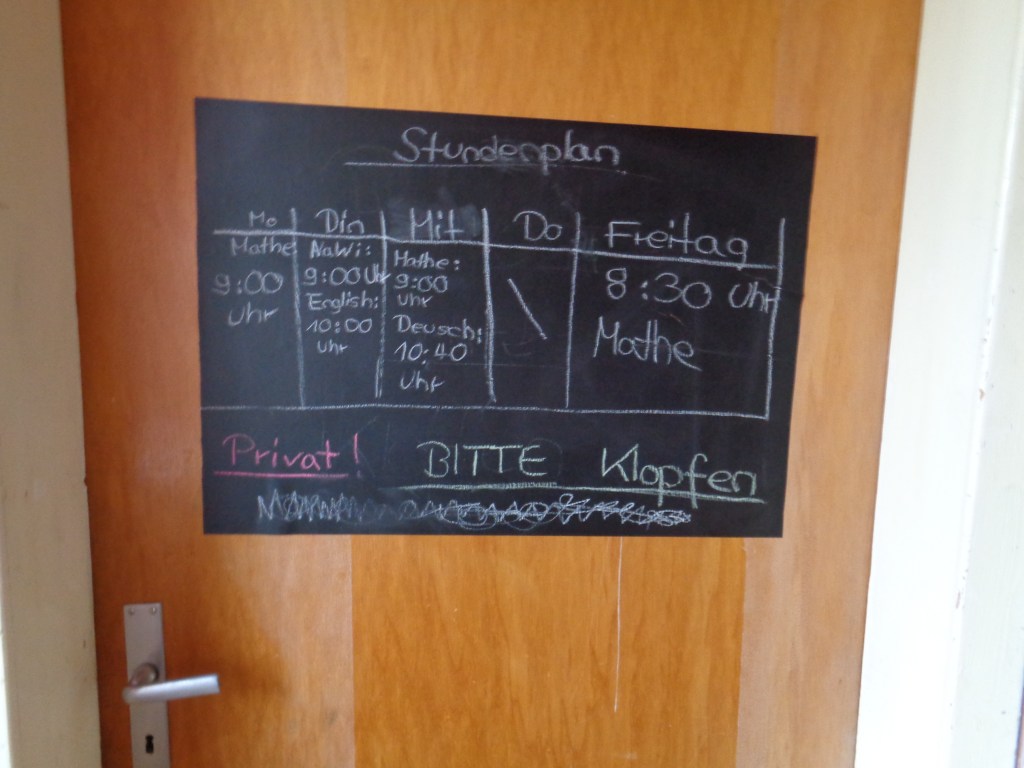 Die Deutschlehrern ruft an. Das Maikind hat den Unterricht versäumt. Außerdem fehlen noch zwei Hausaufgaben. Ich bedanke mich für den Anruf, ist schön, mal was zu hören. Ohne feedback wäre da ab hier auch nichts mehr zu wollen gewesen.